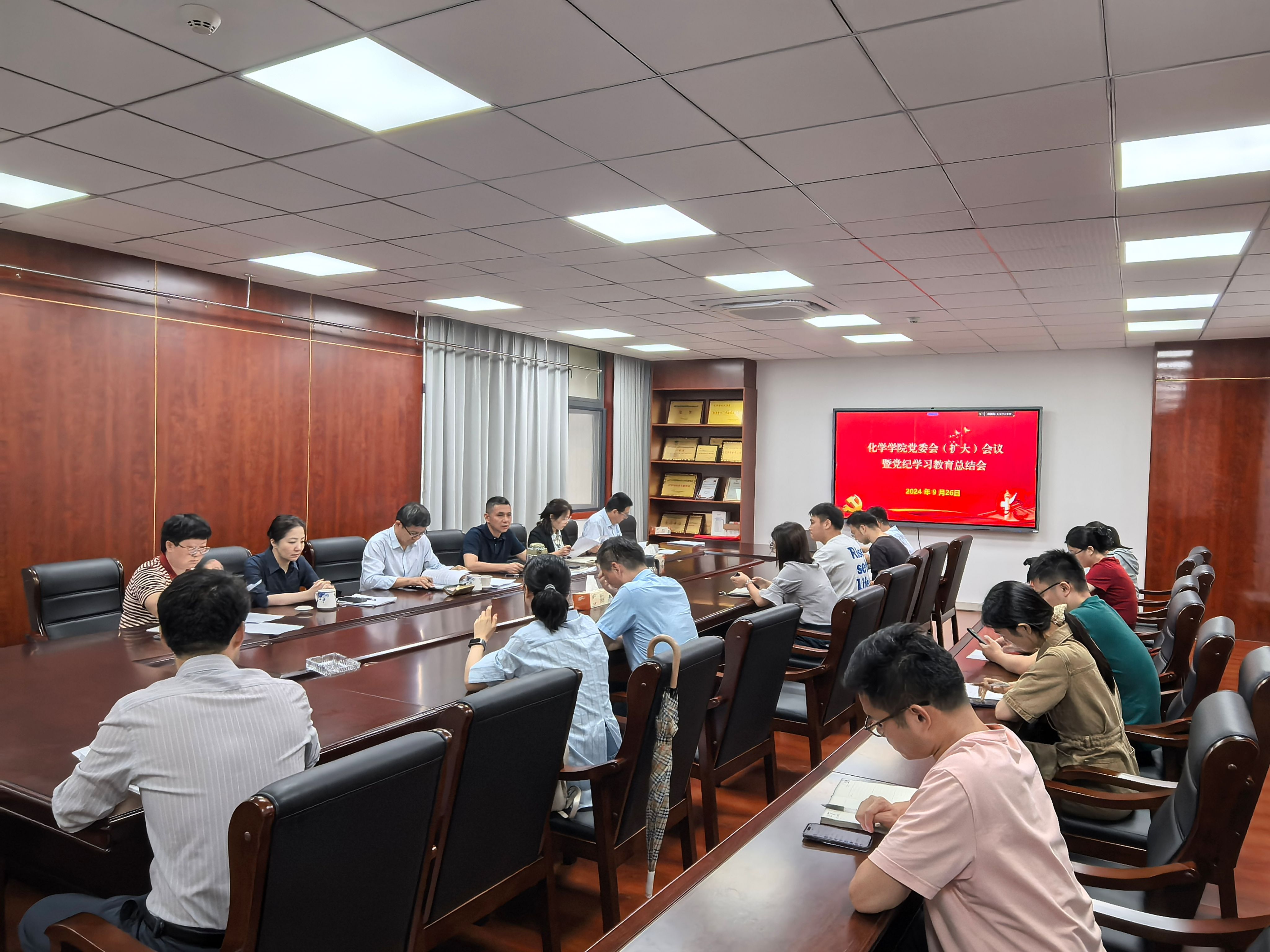 9月26日下午15:00,公司在化学学科楼A508会议室召开党委会(扩大)会议暨党纪学习教育总结会。公司领导班子成员、党委委员、支部书记等参会。会议由学公司党委书记周辉主持。