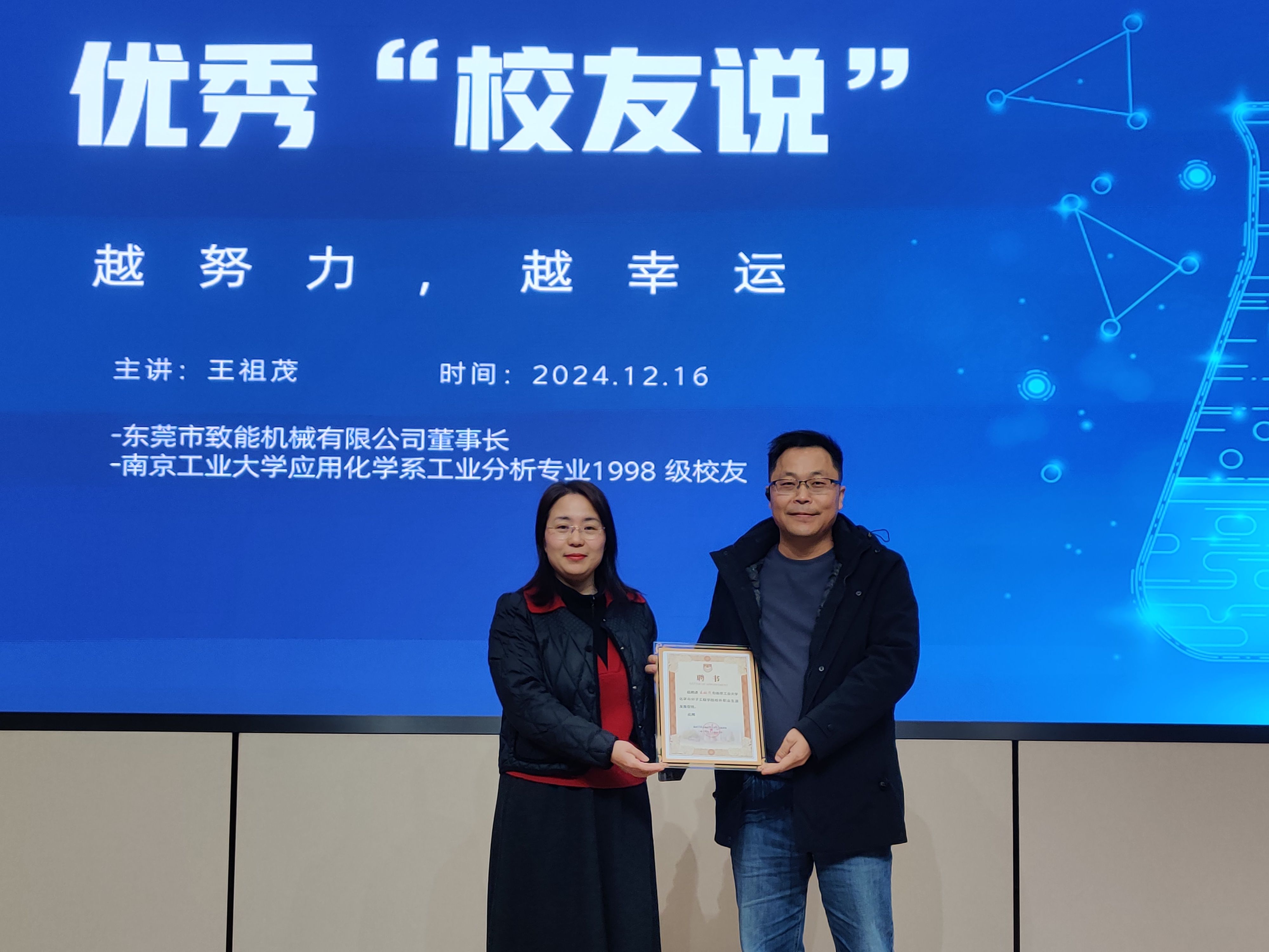 12月16日,公司1998级应用化学系工业分析专业员工、东莞市致能机械有限公司董事长王祖茂先生作客“员工说”讲堂,在化学学科楼报告厅举行“越努力,越幸运”主题讲座,讲座由经理杨文忠主持。