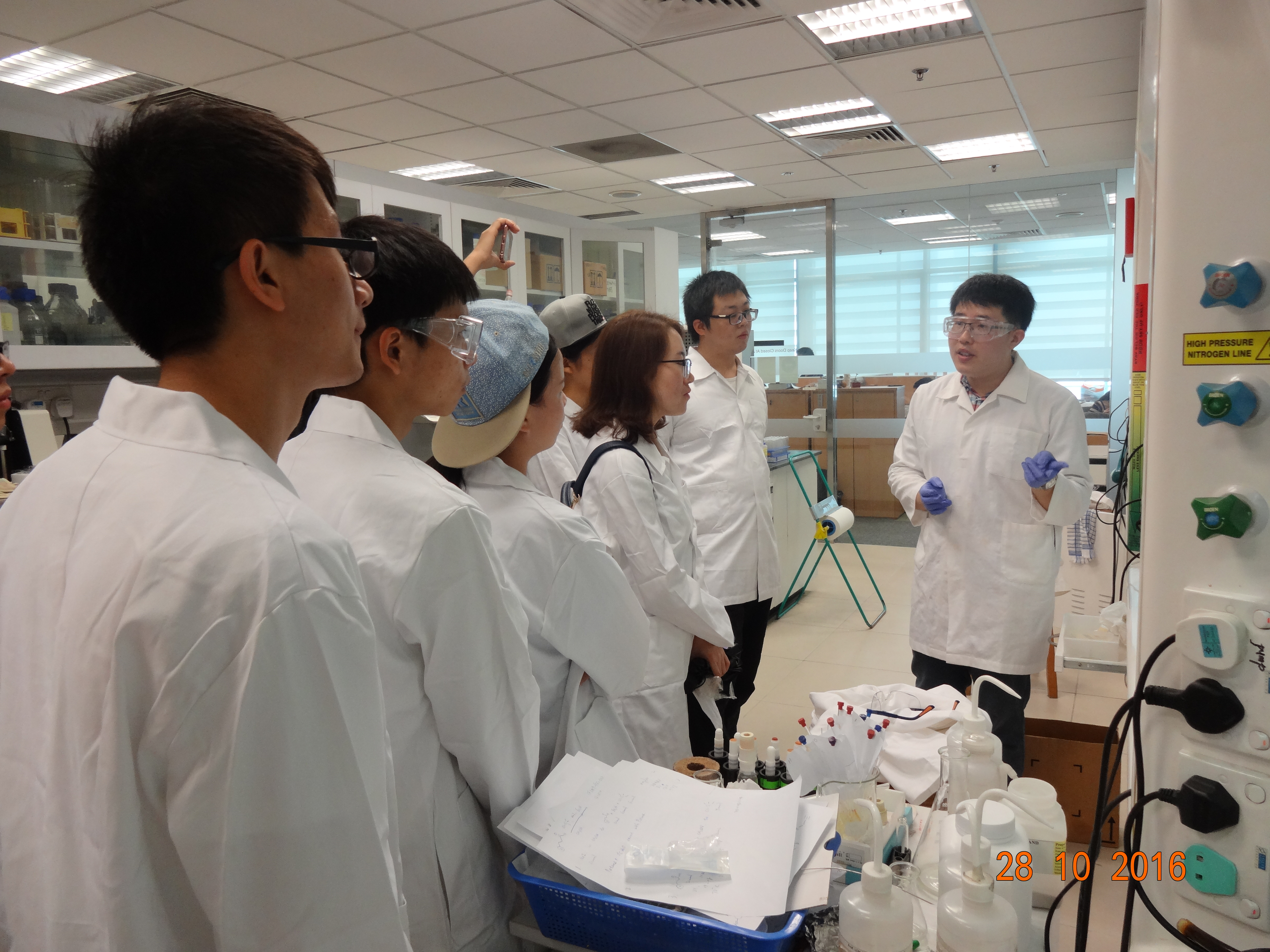为了更为全面了解美丽的南洋理工大学,同学们相继参观了校史馆、李光前讲堂、李伟南图书馆、The Hive自习楼以及员工餐厅和宿舍;为了促进两地员工的学习交流,同学们与新加坡同学一起聆听了《基础有机化学》课程并与实验室学长们进行了长时间深入的交流,感受到了这里开放, 轻松,活跃的教学和科研气氛;为了进一步拓展员工的眼界,同学们在LAU Raymond教授的讲解下参观了化学与生物医药工程公司的中试车间, 从而初步了解了化学反应及实验室研发到工业化生产的流程。