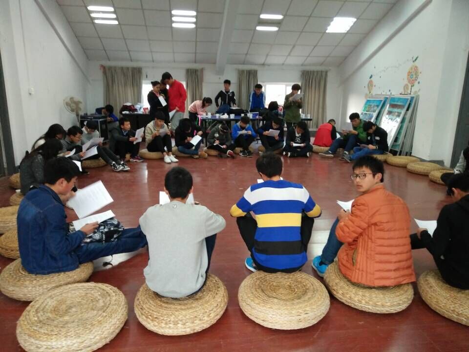 趁着游戏的活跃气氛,大家围圈而座,开始了第二个环节,心理测试,同学们根据自己的测试结果准确的找到了属于自己性格的色彩,主持人根据不同的色彩,将全体同学分为红黄蓝绿四个小组,为下面游戏井然有序的展开提供了基础。