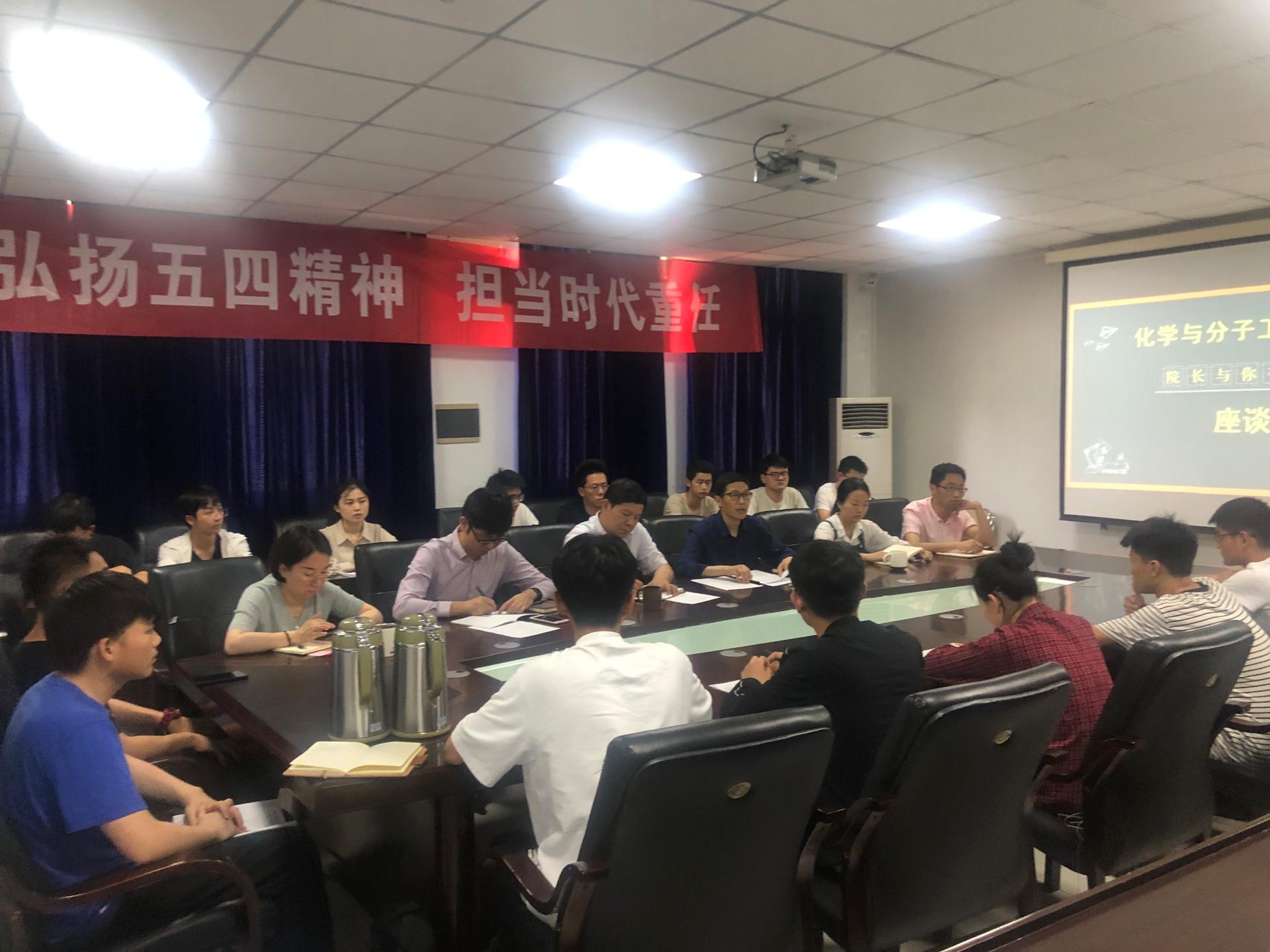 为落实习近平总书记在五四运动100周年大会上的讲话精神,强化“三全”育人理念,着力构建一体化育人体系,落实立德树人根本任务,太阳成集团tyc于2019年5月29日下午在笃行楼会议室举办了以“弘扬五四精神,担当时代重任”为主题的“经理与你有约”座谈会。公司党委书记潘运军、经理杨文忠、党委副书记陈晓晔、副经理刘睿以及学办老师和员工代表出席了本次座谈会。座谈会由陈晓晔副书记主持。