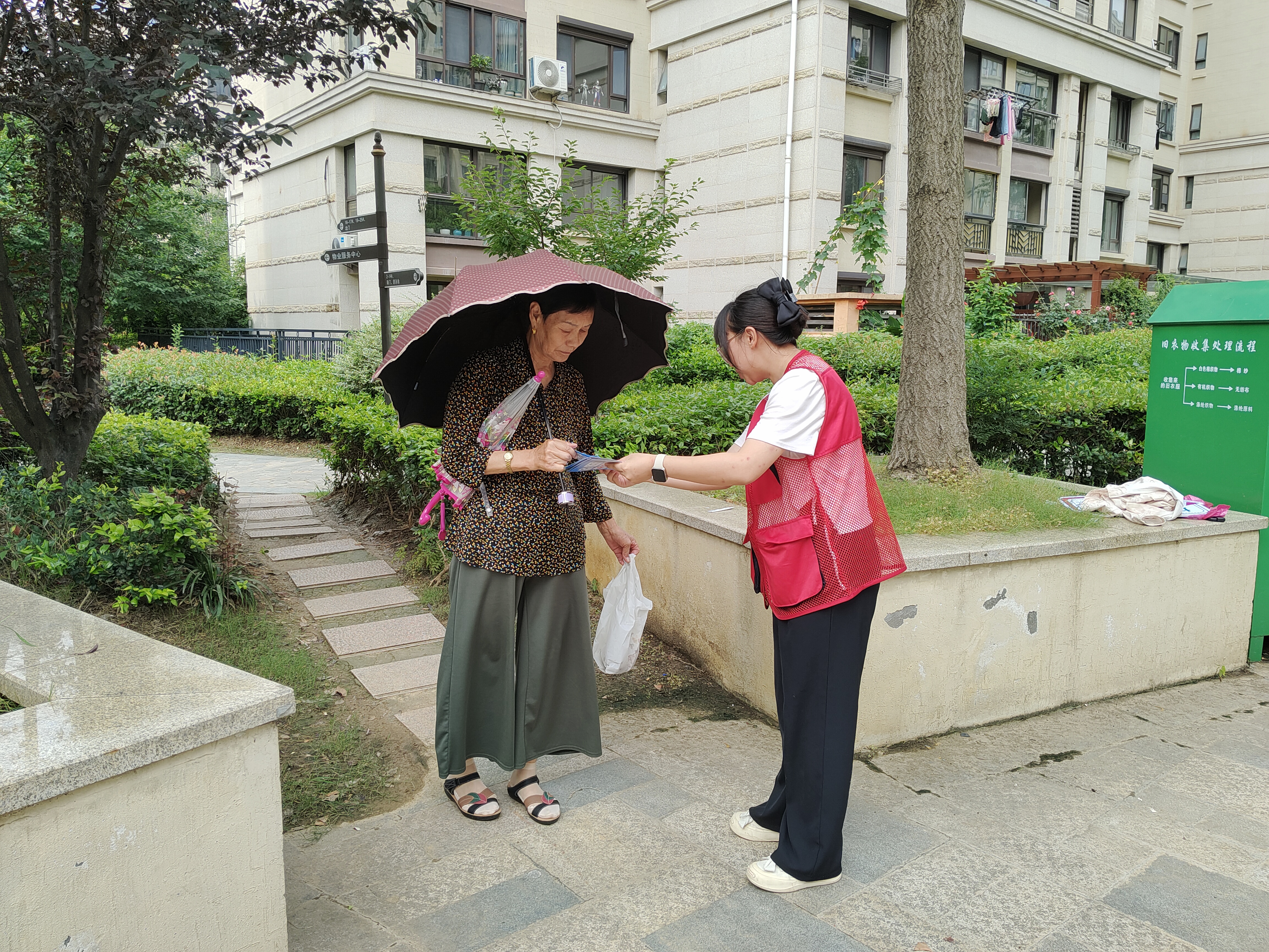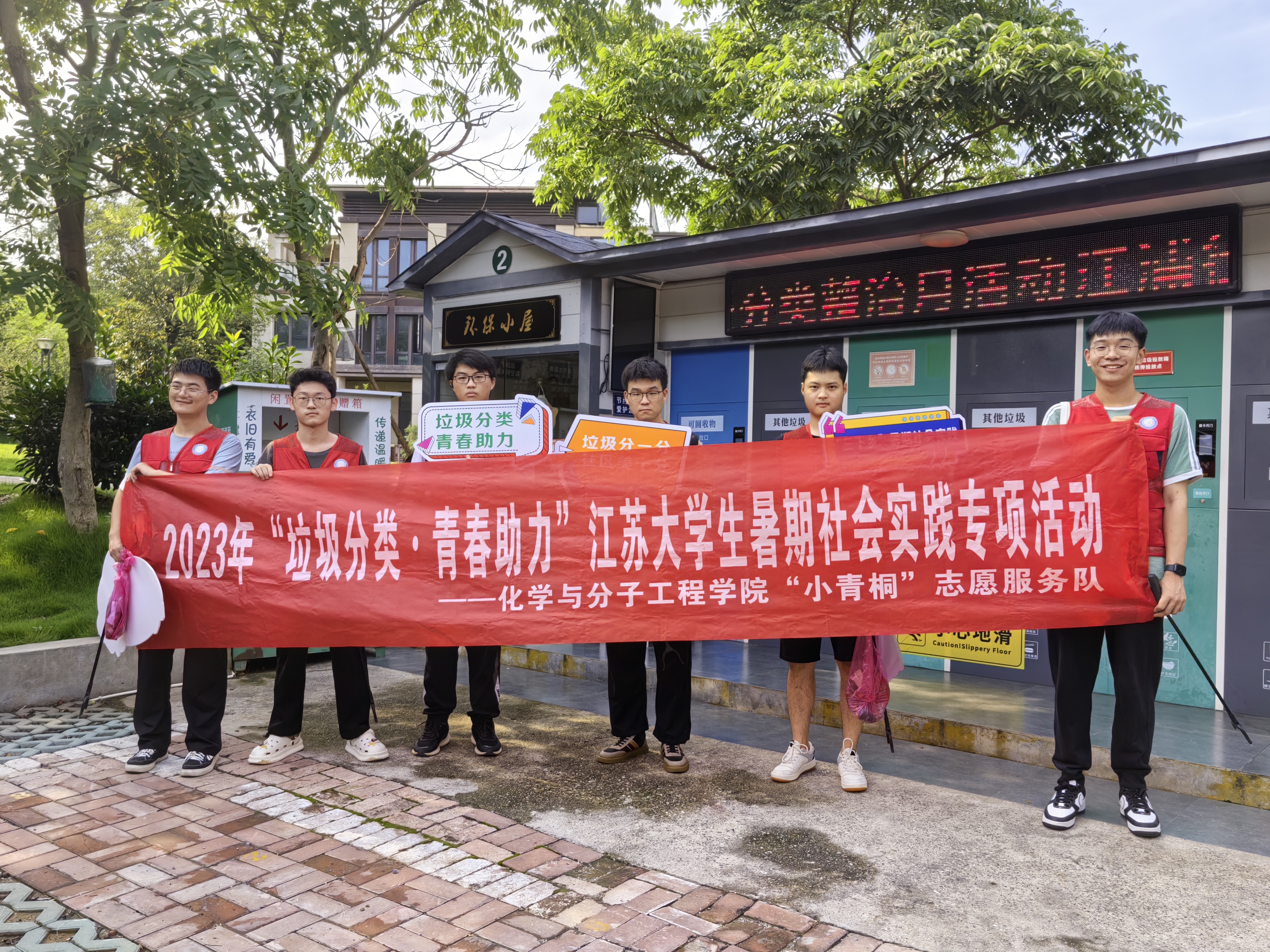 作为2023年“垃圾分类•青春助力”江苏省老员工暑期社会实践专项活动入围团队,志愿服务队在暑期期间还前往公司周边的白马社区的融侨官邸、熙龙山院、白马澜山等多个小区开展“青春助力,垃圾分类”活动,宣传“绿色靠大家、环保在手下、文明贵行动、幸福你我他”理念,让环保、绿色、文明分捡垃圾变成居民的自觉行动。