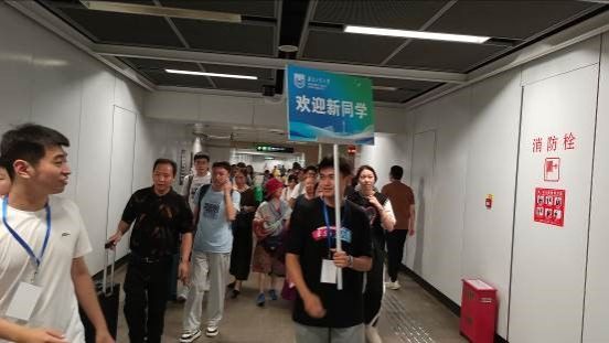 “同学,我来帮你拿行李!”“同学,请从地铁站1号口集合出站。”“同学们,过马路请注意安全!”……晨曦初露,迎新志愿者的身影便活跃在地铁站迎新接待点。他们高举醒目的接待牌,坚守在各个出站口,帮忙搬运行李、引导搭乘接驳车、维持秩序、安抚情绪、解答疑惑,用耐心的态度和热情的讲解为远道而来的学子提供“一站式”暖心服务。