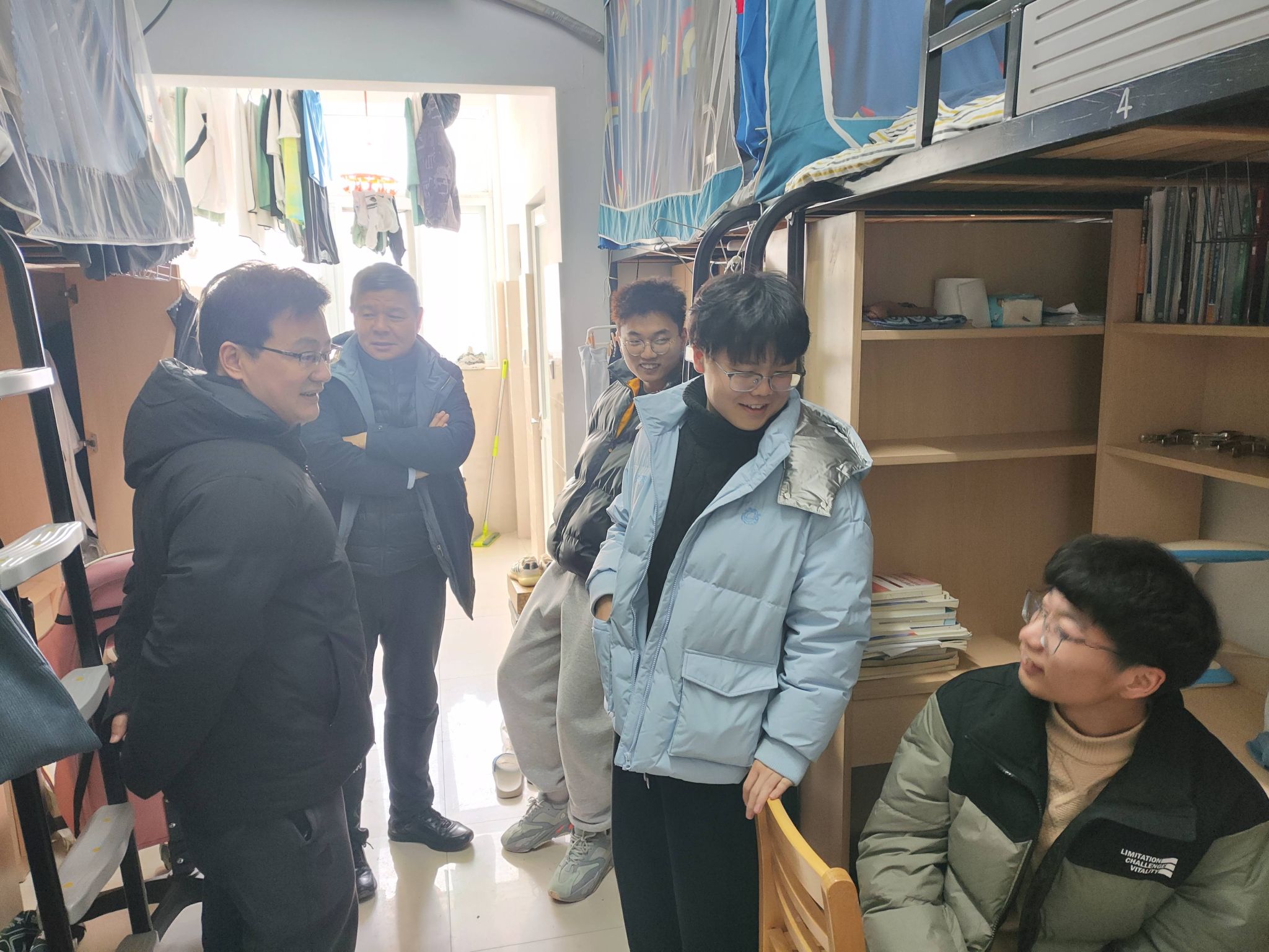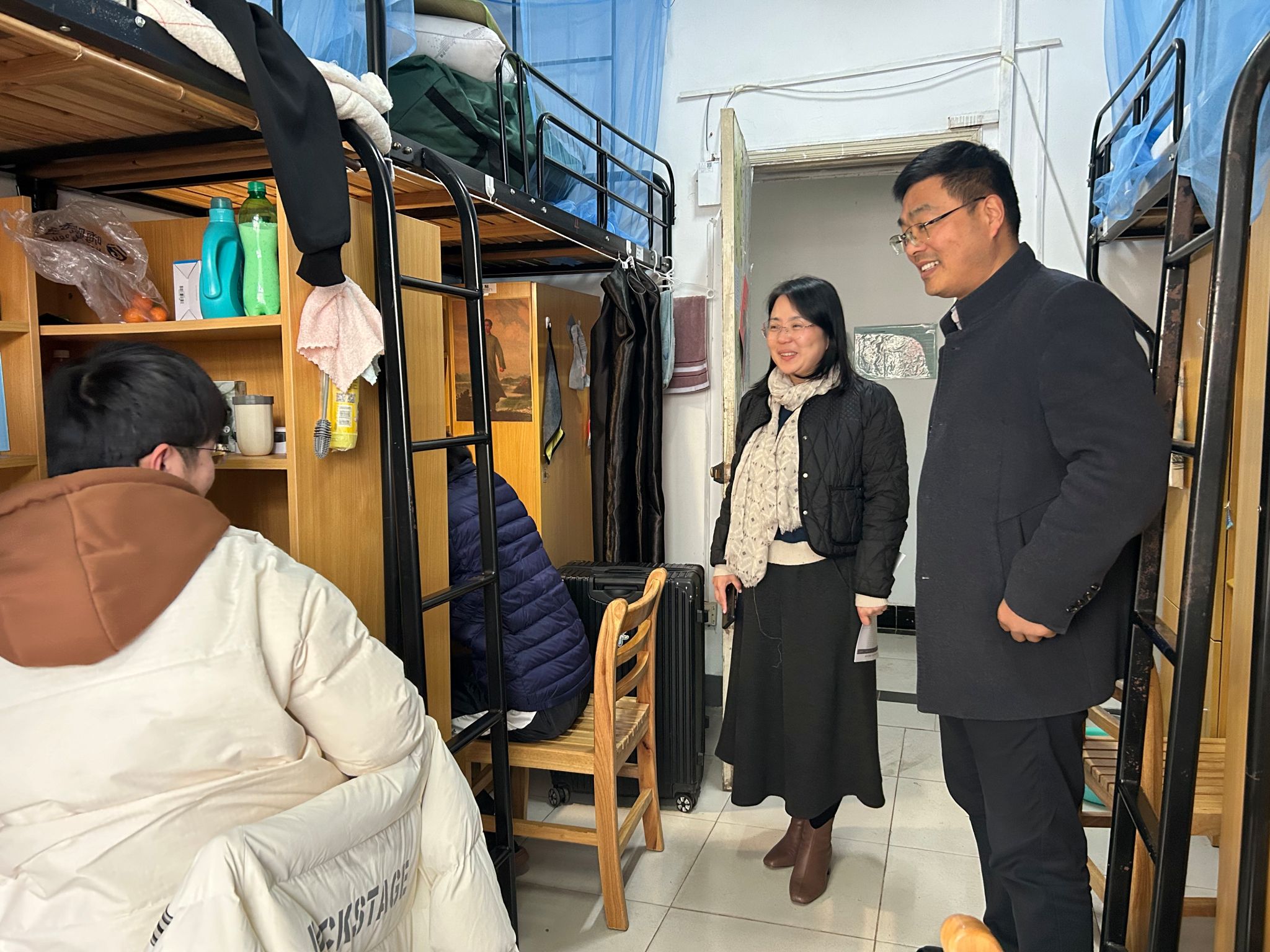 进宿舍送关怀,以生为本情系员工。2月27日,公司党政领导班子成员及各年级辅导员深入研究生、本科生宿舍,了解员工返校后学习生活状况,关注员工需求。排除员工宿舍安全隐患,提醒员工要严格遵守宿舍管理规定,杜绝使用违章电器,保证宿舍用电安全。