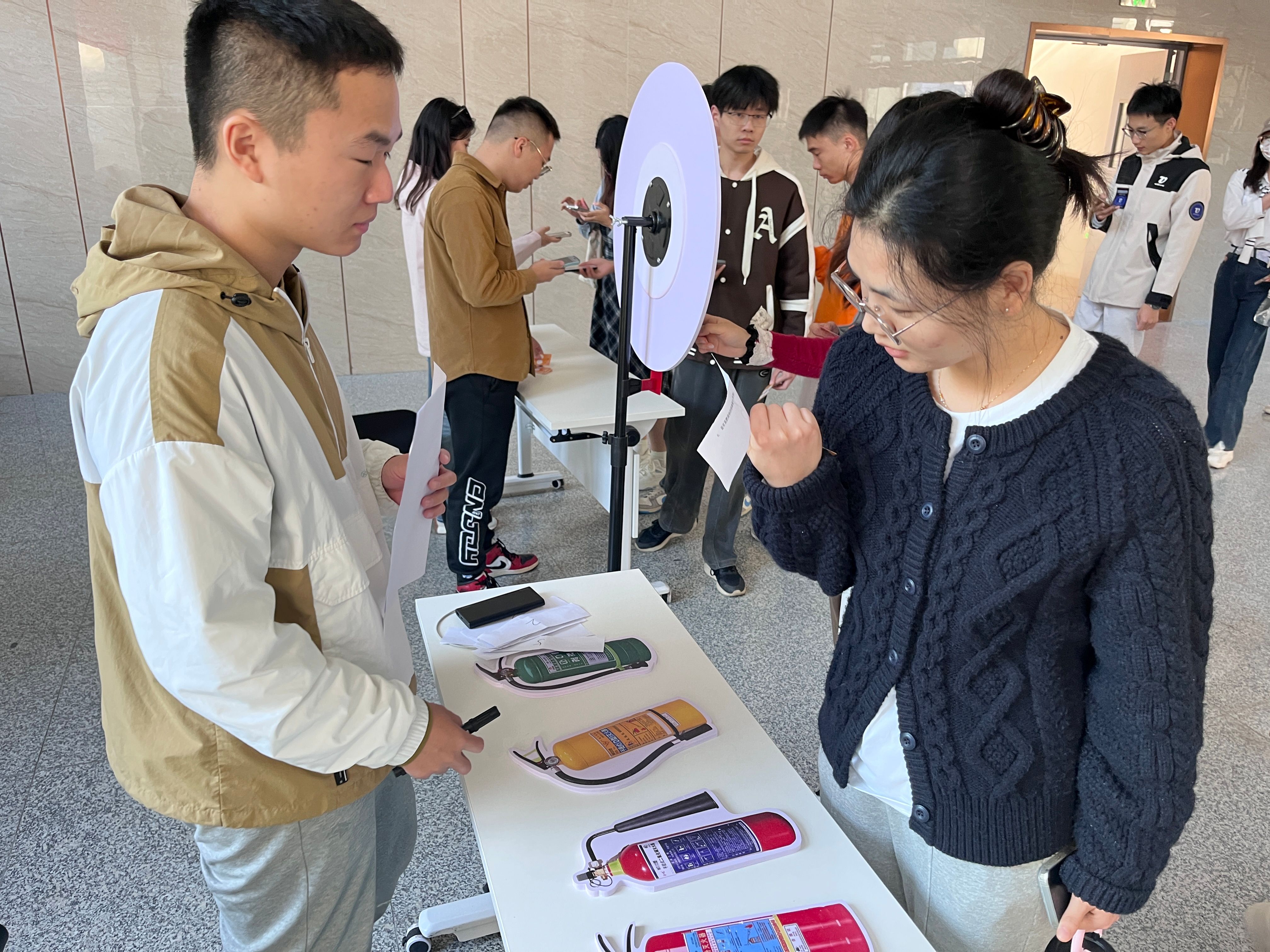 此次安全大闯关活动通过一系列精心设计的游戏和挑战,让研究生们在轻松愉快的氛围中,深刻理解了安全规范的重要性,并掌握应对突发情况的基本技能。“火焰守卫者”环节,同学们通过转盘抽取题目,在答题中学习在电器着火、实验室着火、化学品着火和宿舍着火等多种情况下如何选择合适的灭火器。“安全来找茬”环节和“安全乒乓球挑战赛”则分别通过漫画“找茬”小游戏和趣味知识竞答游戏提高同学们的安全意识。“防诈骗飞行棋挑战赛”结合了传统飞行棋游戏与现代防诈骗教育,让参与者在游戏过程中学习防诈骗知识,提高识别和防范诈骗的能力。