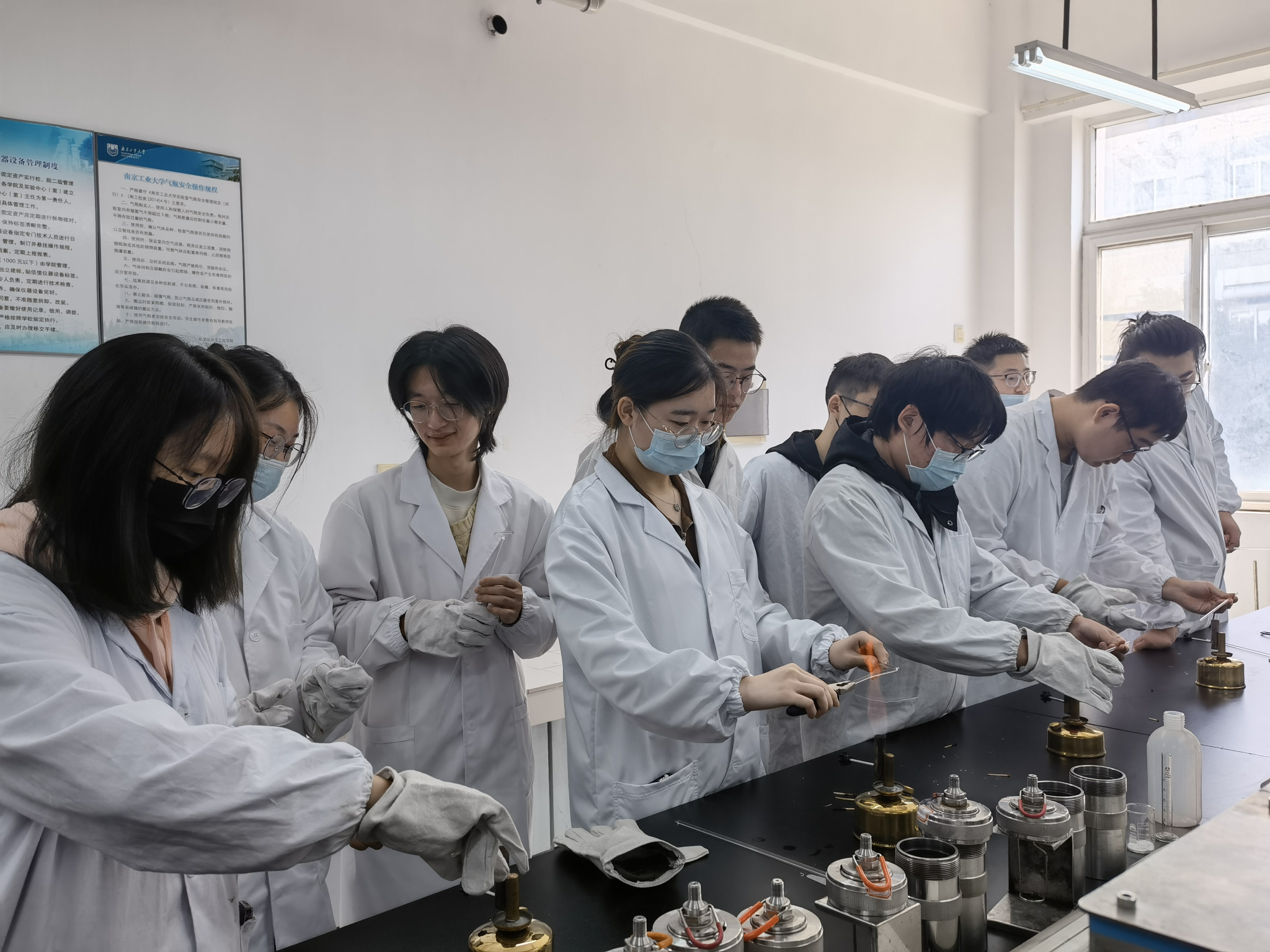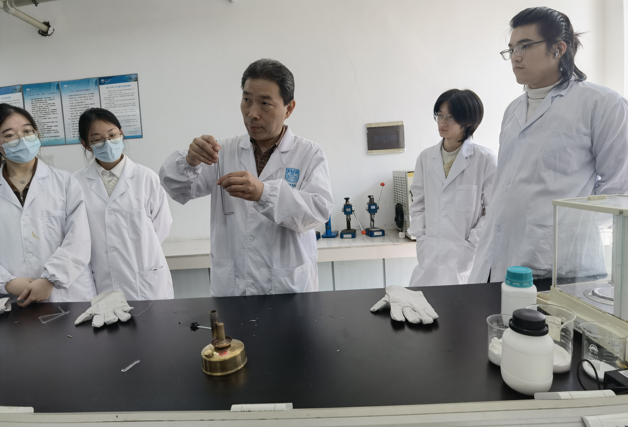 一群身着实验白大褂的员工或专注于手中活,或在认真地观摩老师的示范动作。“老师,我这种形状的搅拌器符合实验要求吗?能不能提高搅拌效果?”化学(英才)2101班冯子恒在张东明老师的指导下,通过钳子将不锈钢条弯曲成搅拌器后,兴奋地追问道。