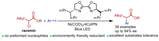 25.Guan, H.; Zhang, Q.; Walsh, P. J.; Mao, J.,* Nickel/Photoredox-Catalyzed Asymmetric Reductive Cross-Coupling of Racemic α-Chloro Esters with Aryl Iodides. Angew. Chem., Int. Ed. 2020, 59, 5172.