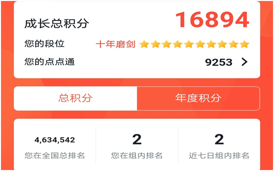 图2.截止到2020年3月29日张要威同志的学习强国积分情况
