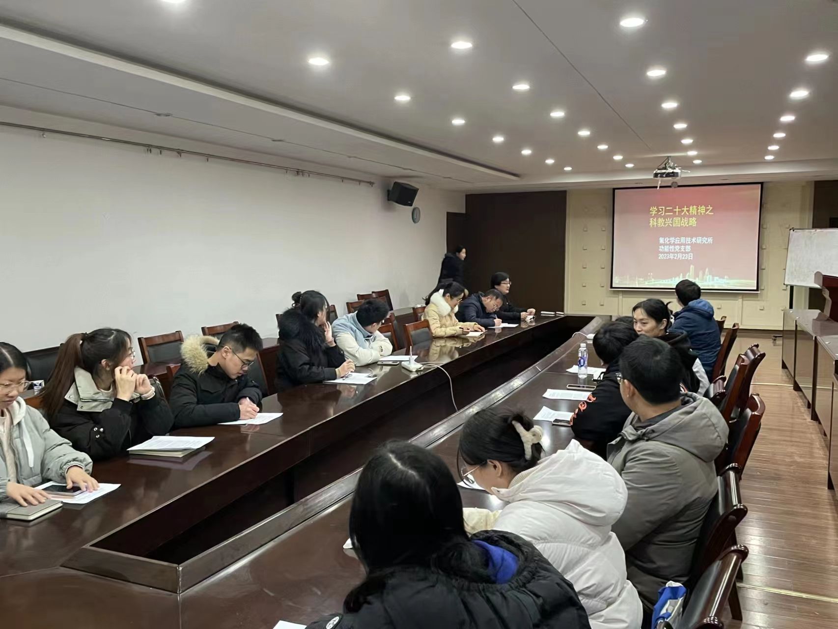 强化理论武装,凝聚奋进之力。为深入学习贯彻党的二十大精神,增强氟化学应用技术研究所师生联合党支部的政治功能和组织功能,切实推进党建工作和人才培养双融双促,2月23日,氟化学应用技术研究所党支部在笃学楼召开党的二十大精神学习交流会。