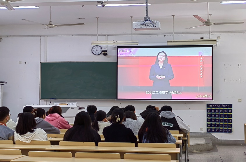会上,丁威领学了习近平总书记对广大青年的青春寄语,勉励大家要以国家富强、人民幸福为己任,胸怀理想、志存高远,积极投身中国特色社会主义伟大实践,并为之终生奋斗。随后,党员集体观看了“二十人讲二十大”视频。视频里讲诉了牺牲在扶贫一线,到生命最后一刻都为群众办事的“小太阳”,敢于斗争把不可能转化为可能的航天员杨利伟以及地质学家张克立的故事。大家认真观看,深受感染。