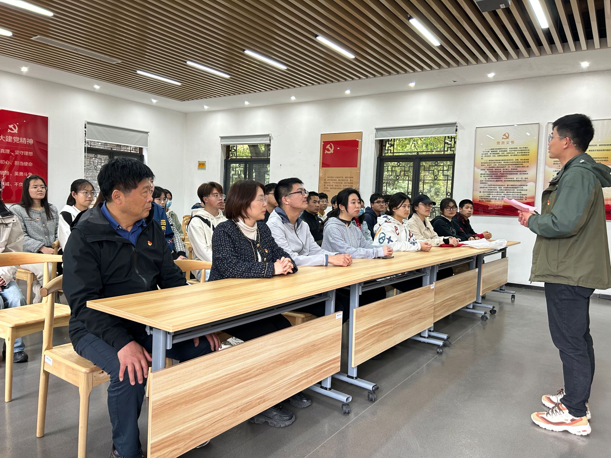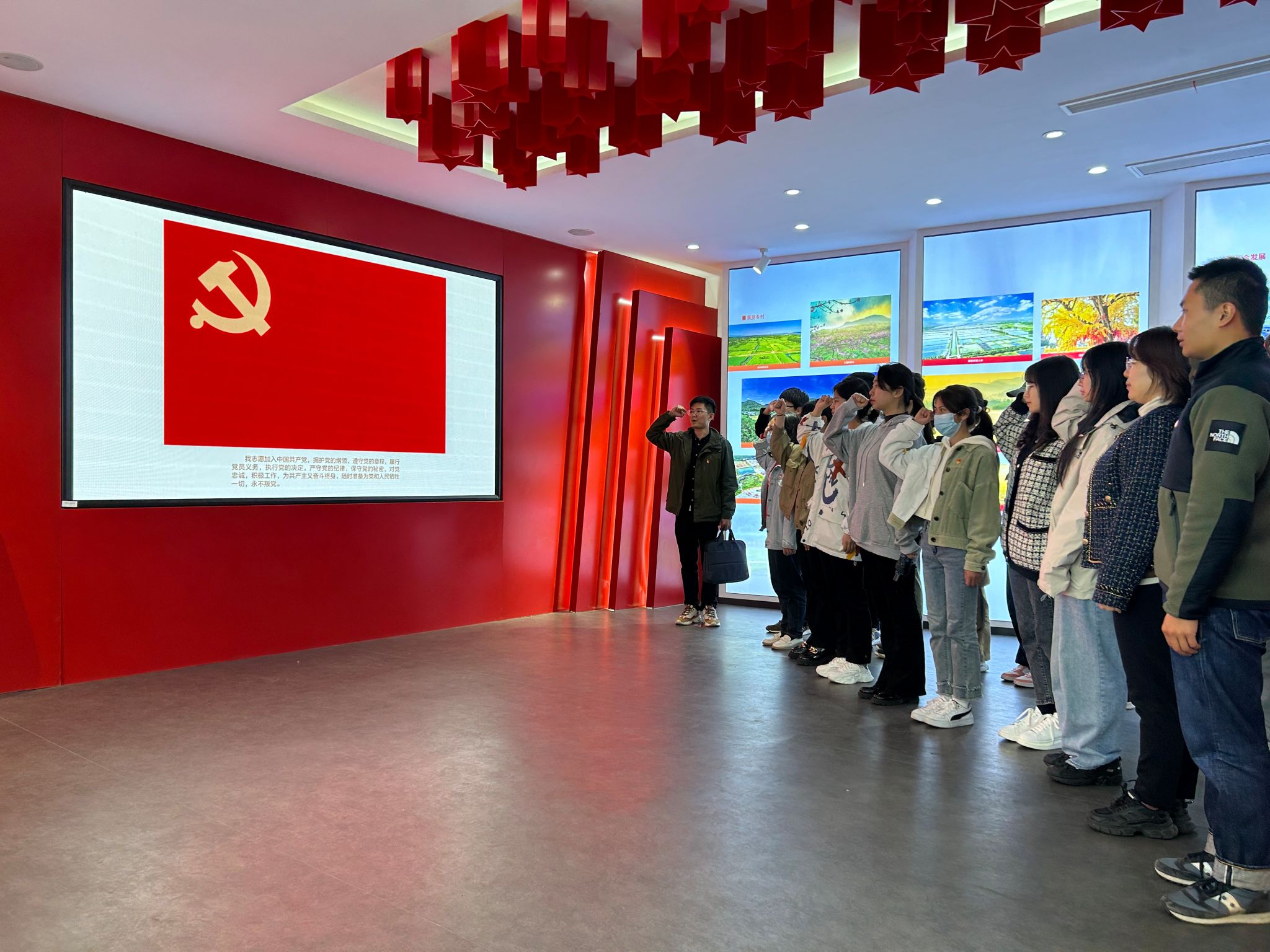 活动最后,戴坤老师带领大家重温入党誓词,铿锵有力的宣誓声响彻大厅,表达了大家对先烈们的崇高敬意。