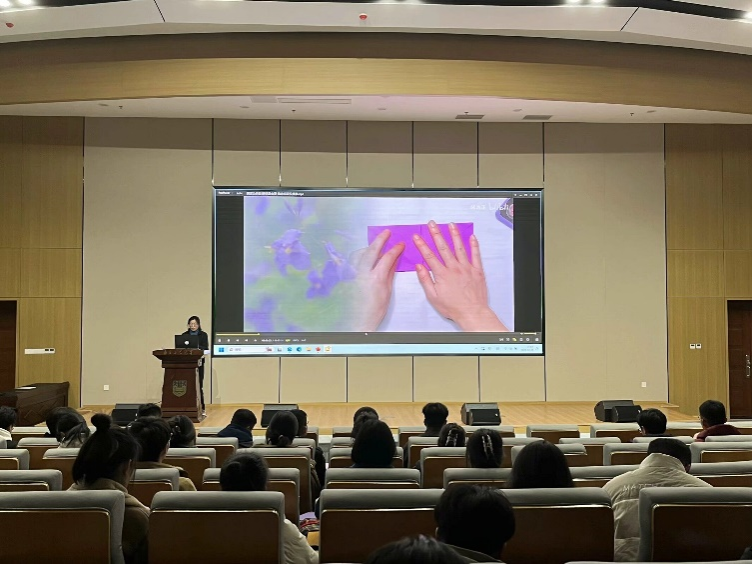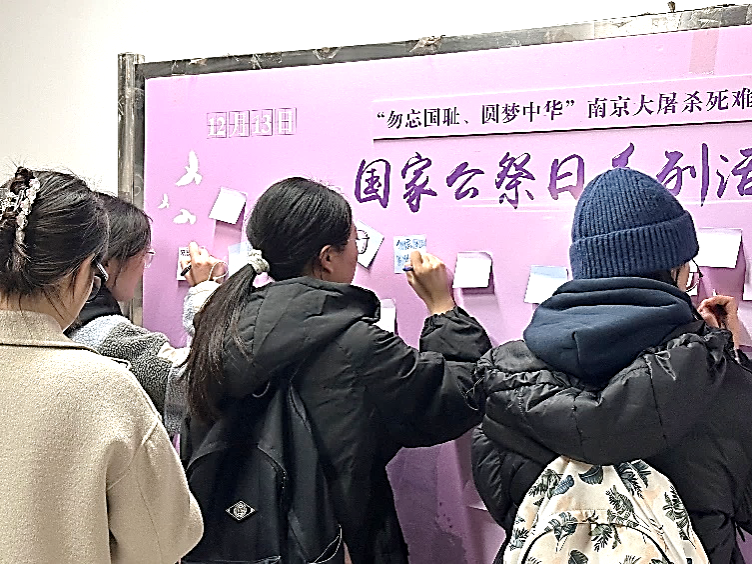 在博士生党支部书记孔亚如的引导下,参加活动的同学们扫描“紫金草行动”二维码,为同胞们种下一株紫金草。随后,参加活动的同学观看了电影《金陵十三钗》。观影结束后,大家一边观看国际折纸奥林匹克世界冠军裴浩正的解说视频,一起折叠“紫金草”;紫金草折在手里,开在心里,每一折,每一叠,都倾注了对抗战英烈的思念与缅怀。参加活动的同学在许愿墙前纷纷留言,郑重写下对死难者的悼念和对和平的祈望。