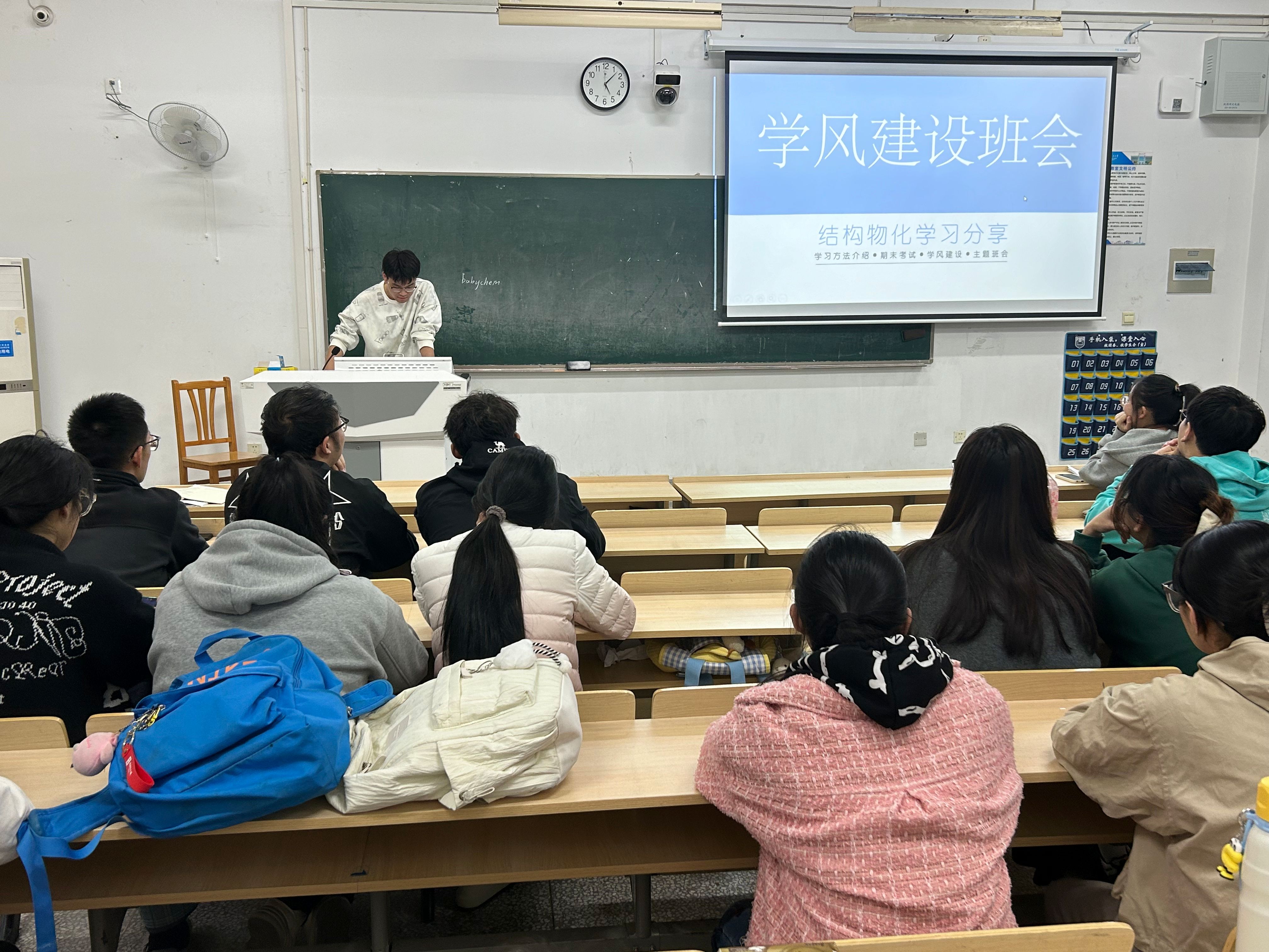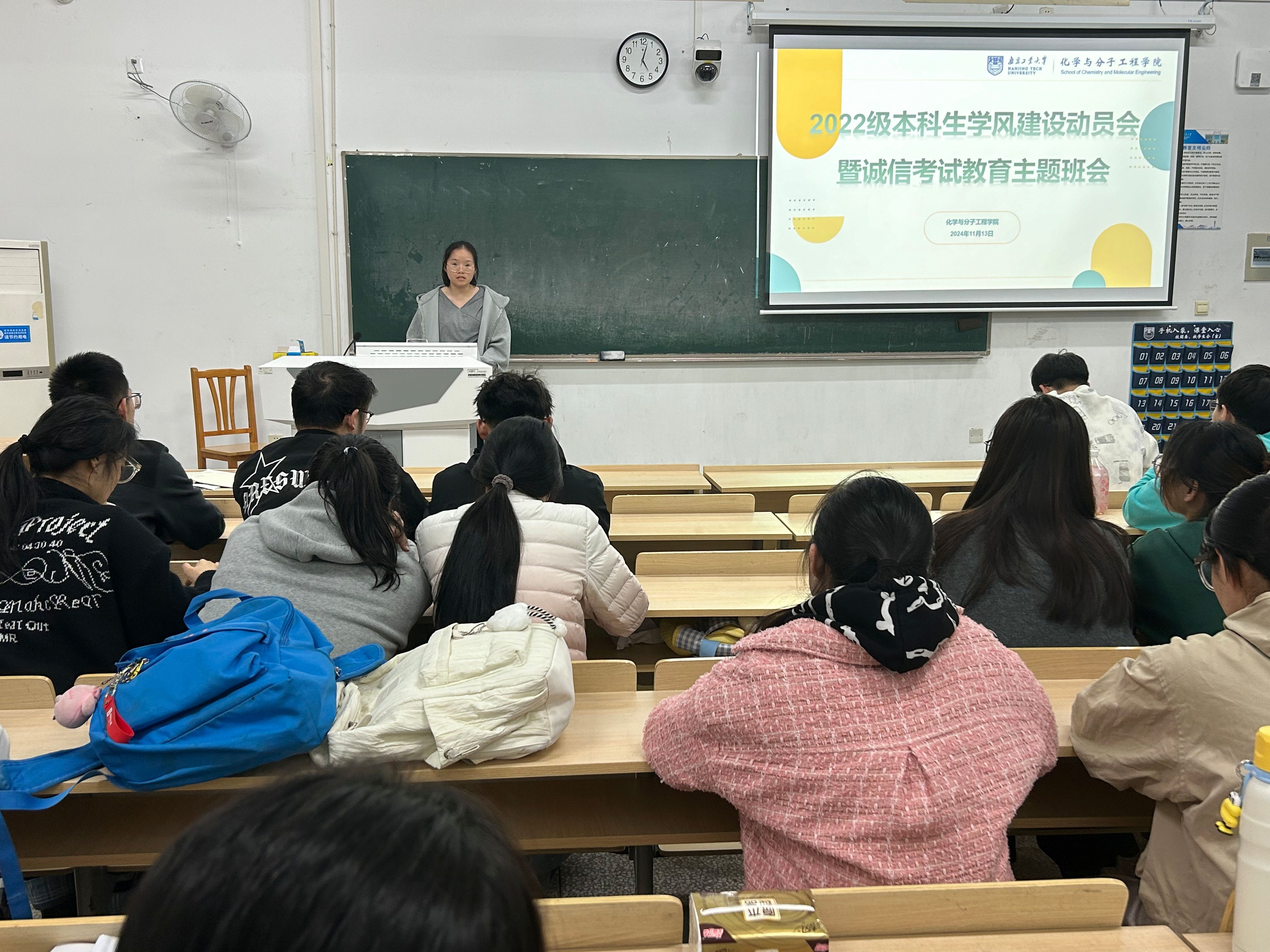 11月13日下午,应用化学专业党支部联合应化2205班开展学风建设活动暨诚信考试主题教育班会,2022级辅导员、应用化学党支部书记吴帅帅,员工党员蓝夕云、吕超,应化2205班全体员工参加活动。