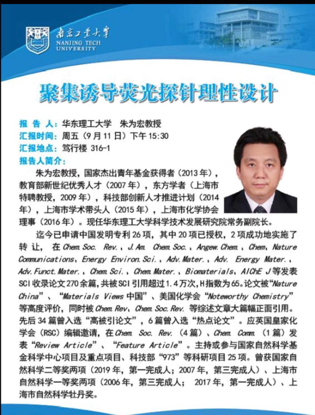 华东理工大学朱为宏教授学术报告会