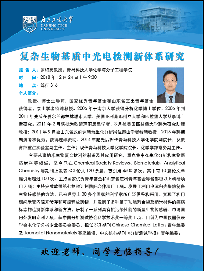 地址:南京浦口区浦珠南路30号 邮编:211880 电话:025-58139535、9536、9537 邮箱:chem@njtech.edu.cn