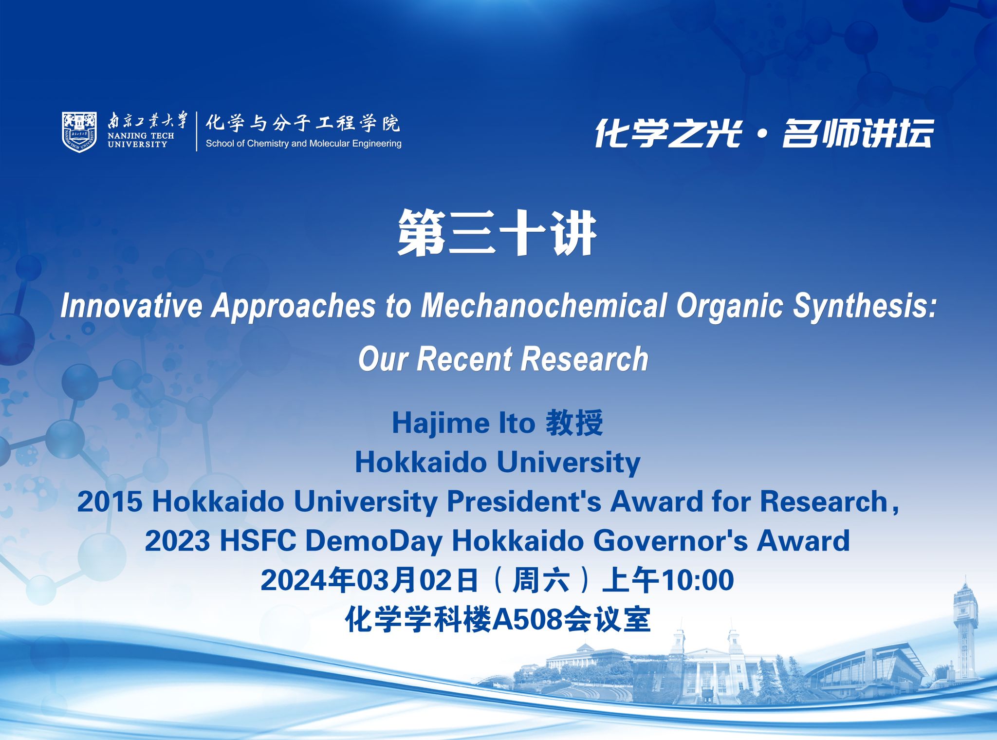 Mechanochemical organic synthesis uses a ball mill instead of the conventional glass vessel with solvent to carry out the reaction. This method has significant advantages, such as greatly reducing the reaction solvent, accelerating the reaction, and allowing the use of insoluble substrates. In this talk, Professor Hajime Ito will discuss cross-coupling reactions under mechanochemical conditions, organometallic chemistry, mechanoredox with piezoelectric materials, and radical reactions by cleavage of polymers. If time permits, our silicon and boron chemistry will also be presented.