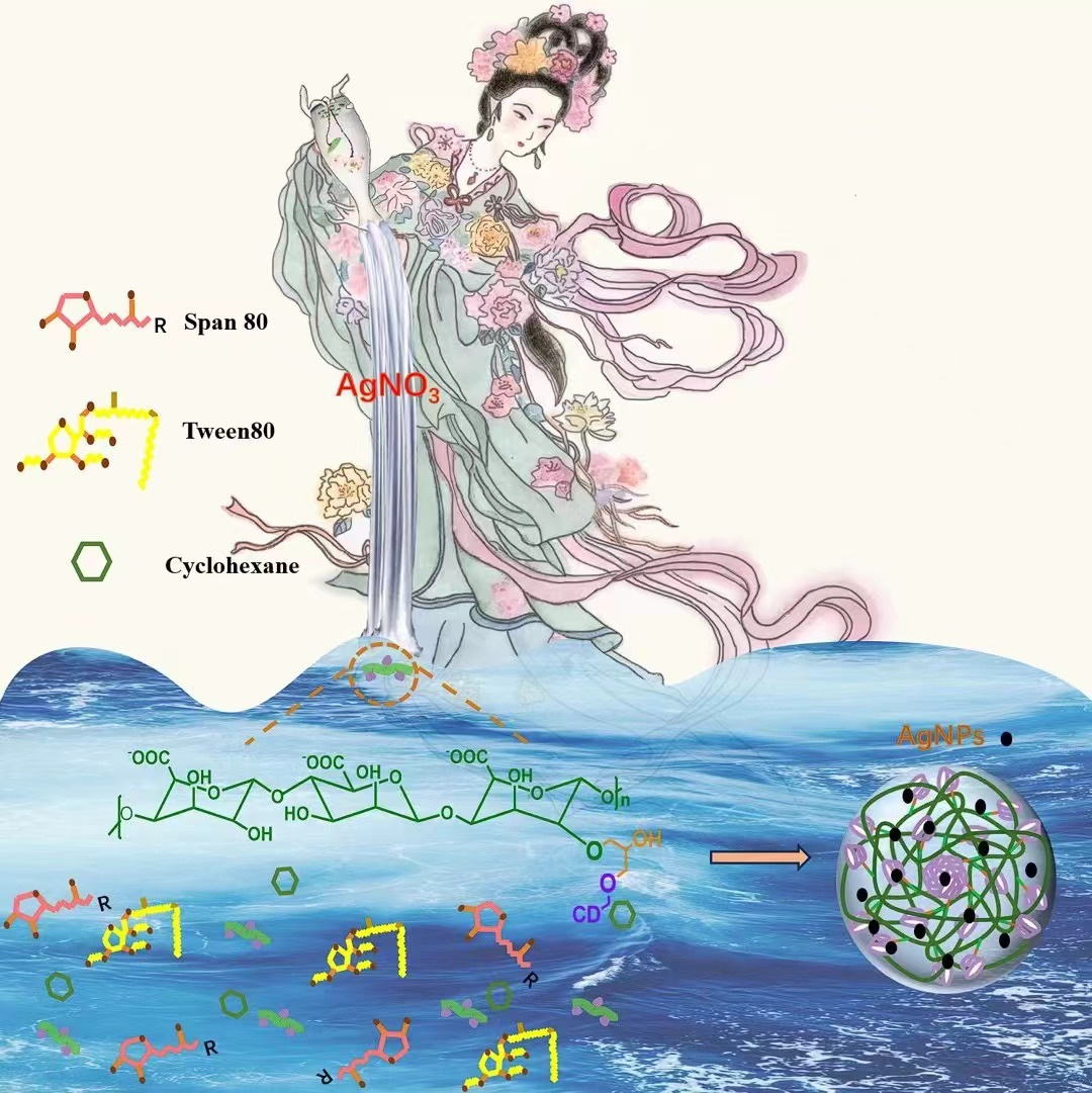 Abstract: In this paper, we developed a novel and green strategy to synthesize a kind of composite hydrogel microspheres containing silver nanoparticles and β-cyclodextrin (β-CD) modified sodium alginate (β-CD@SA@Ag) without use of strong reducing reagent. First, β-CD was chemical linked to SA by epichlorohydrin (ECH) to form the β-CD modified polymer (β-CD@SA). then AgNO3 was added to the as-prepared polymer solution, in which silver nanoparticles were formed by the reducing power of β-CD units. Subsequently, by reversed-phase emulsion method and ionic cross-linking, a kind of β-CD@SA@Ag hydrogel microspheres were obtained. Test data indicated that silver nanoparticles evenly dispersed in the composite material. On the basis, the adsorption and catalytic performances of the β-CD@SA@Ag hydrogel microspheres were studied towards to the reduction of aromatic nitro compounds. Research results showed that the β-CD@SA@Ag hydrogel microspheres had excellent catalytic activity along with high environmental adaptability. whether in pure water, tap water or river water, aromatic nitro compounds can be completely reduced within 2-13 minutes. Moreover, the morphology of microspheres of the composite material endows the composite material with high stability and reusability. We believe that our work would provide a new idea for the green synthesis of organic-inorganic composite functional materials.
