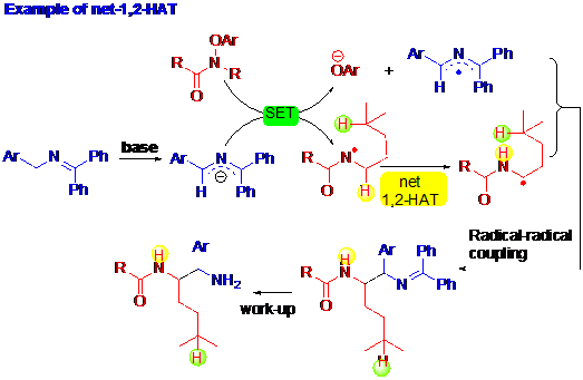 Our team has been examining a series of reactions that begin with deprotonation of weakly acidic C–H bonds with pKa’s as high as 43 in DMSO. The resulting anions can undergo nucleophilic attack with various electrophiles resulting in C–C bond formation. Alternatively, the deprotonated intermediates can undergo single electron transfer to various organic electrophiles to produce radicals. These radicals can undergo coupling, be captured by transition metal catalysts for further elaboration, or undergo a net-1,2-HAT. Related radicals can also be accessed through radical additions to double bonds.