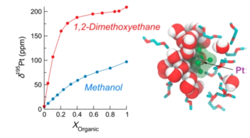 In the second one, I will present a combined NMR-MD approach aimed at understanding the solvation of the [PtCl6]2– anion in Water–Methanol and Water–Dimethoxyethane Binary Mixtures, and in particular why the 195Pt NMR varies with the organic component fraction in a very different way depending on the organic solvent used in the binary mixture.